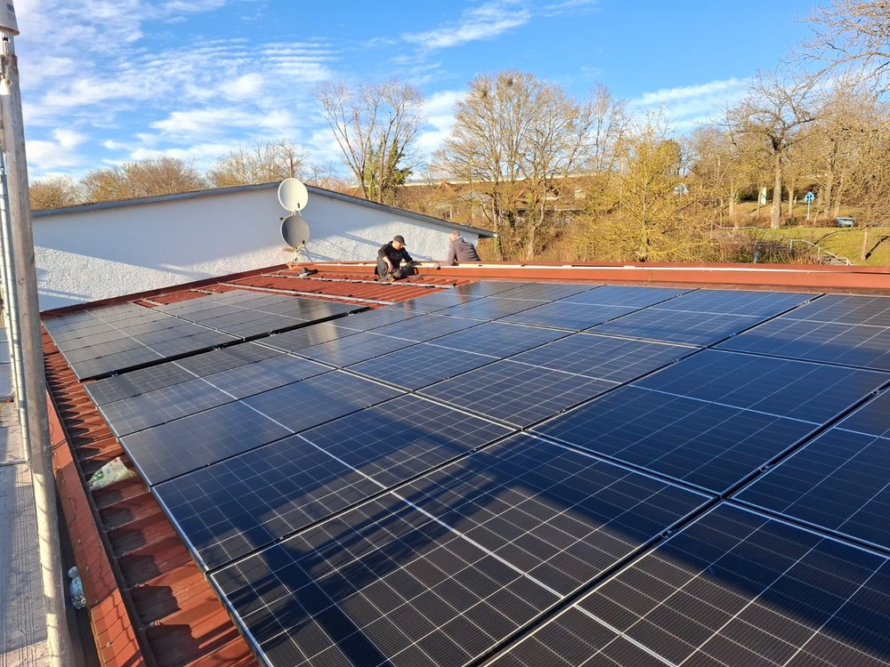 Seit Ende März 2025 wird auf dem Hallendach Strom produziert, überschüssige Energie kann auch gespeichert werden.