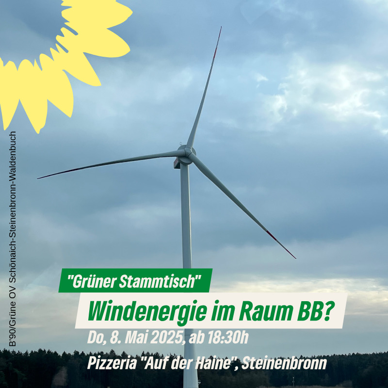 Ich freue mich, dass dieser kommende Stammtisch von Vertretern „Windkraft Böblingen“ fachkundig begleitet wird. Und ich freue mich über einen geselligen, informativen Austausch miteinander!