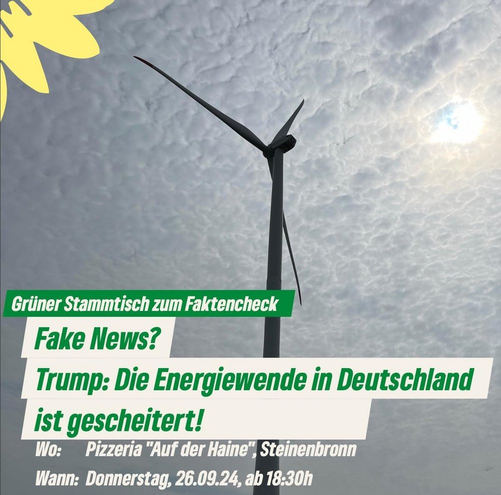 Am Donnerstag, dem 26. September ab 18:30h im Rahmen des „Grünen Stammtischs“ in der Pizzeria „Auf der Haine“ in Steinenbronn.