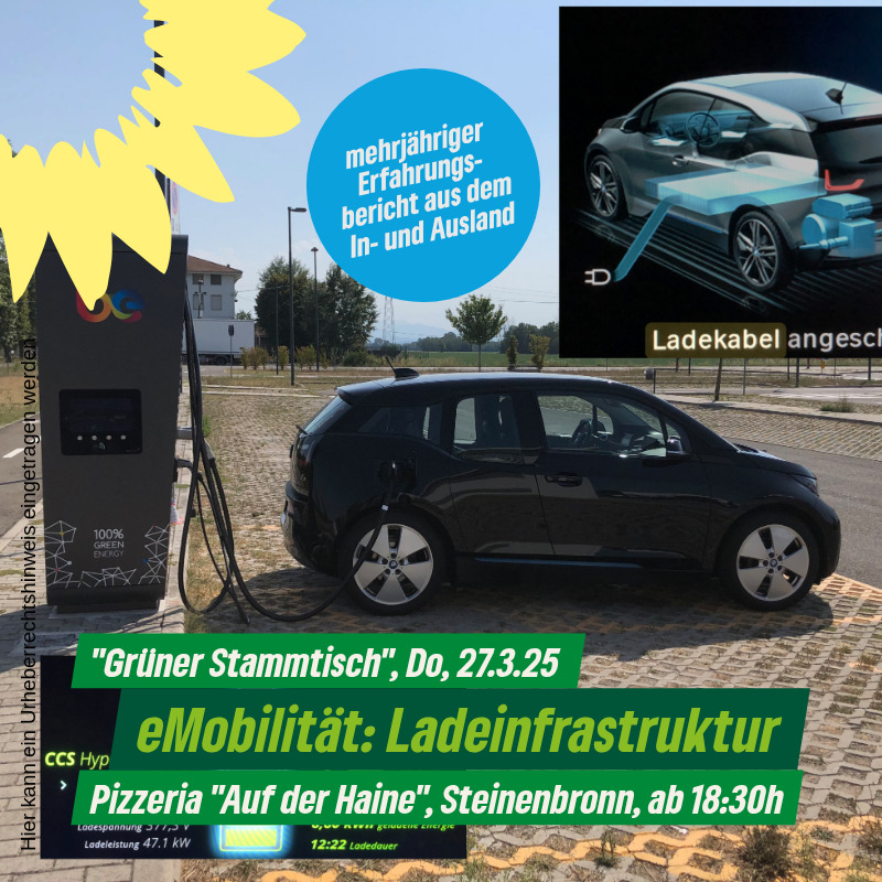 Am Donnerstag, dem 27. März 2025 findet unser nächster "Grüner Stammtisch" rund um das Laden von Elektroautos statt. Erfreulicherweise haben sich die Verkaufszahlen von Elektroautos mit dem Jahresbeginn 2025 wieder erholt. Gründe dafür gibt es viele: Wirtschaftliche, da Elektroautos günstiger geworden sind und die Energiekosten gerade mit eigener Fotovoltaikanlage geringer sind. Technische, weil die Hersteller immer neue und bessere Elektroautos liefern, die zum einen höhere Reichweite und schnellere Ladezeiten ermöglichen. Und schlicht: Umweltpolittische, die mit zunehmenden erneuerbaren Energien, effizienterer Herstellung der Akkus, der Umweltvorteil durch reduzierte CO2-Emissionen immer besser dastehen lassen. Komfortable, da Elektroautos bequem, leistungsstark, entspannend und moderner sind.