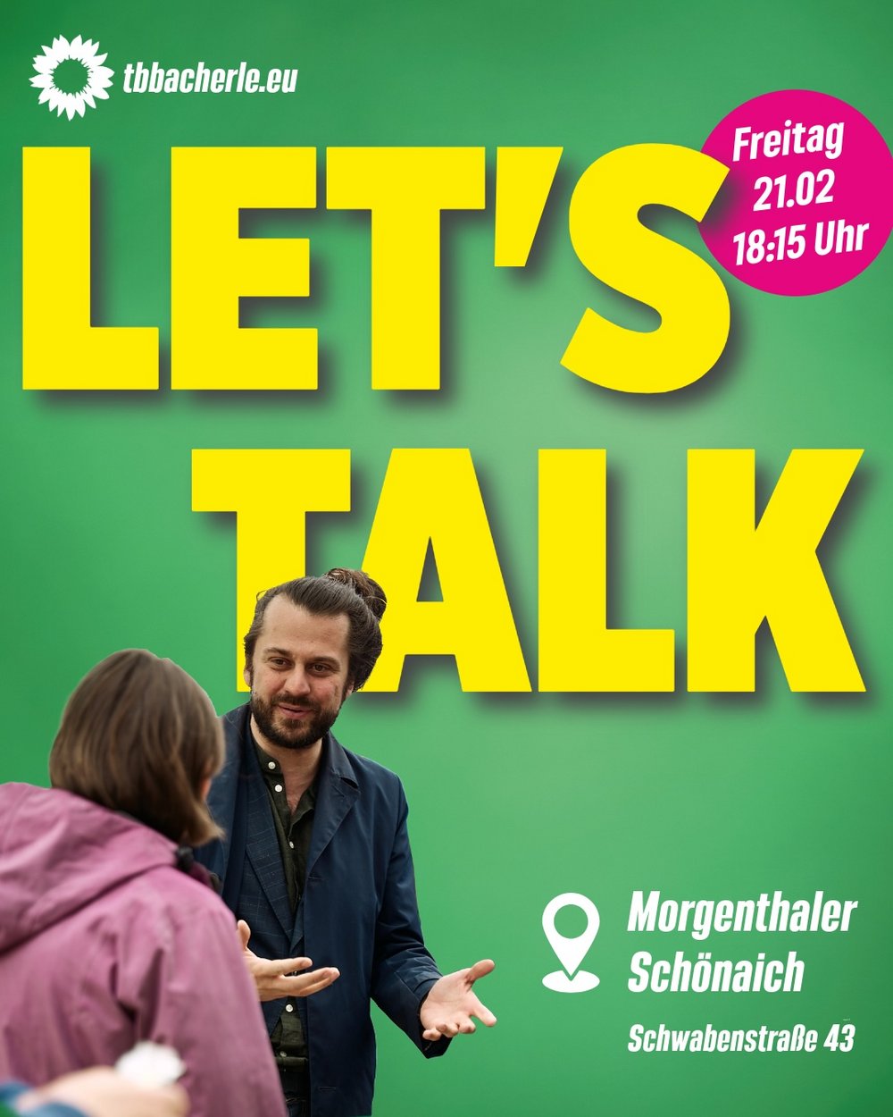 Am 21. Februar um 18:15 Uhr lädt unser Bundestagsabgeordneter Tobias B. Bacherle (Bündnis 90/Die Grünen) zum offenen Gespräch ins Café Morgenthaler in Schönaich ein. In entspannter Atmosphäre geht es um die anstehende Bundestagswahl, die aktuellen politischen Entwicklungen und eure Fragen.